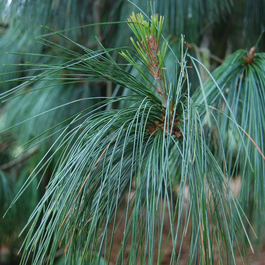 Сосна гималайская – мощное дерево, диаметром от 8 до 20 м. Относится к быстрорастущим сортам и достигает 30 – 50 м в высоту. Годичный прирост составляет 15 см в ширину и до 60 см в высоту. Хвоя продолговатая (примерно 18 см), остроконечная, тоненькая, голубовато-зелёная. На молоденьких ветвях она растёт в вертикальном направлении, а на старых – поникает вниз. Отлично гнётся и остаётся на дереве в течение 4 лет.